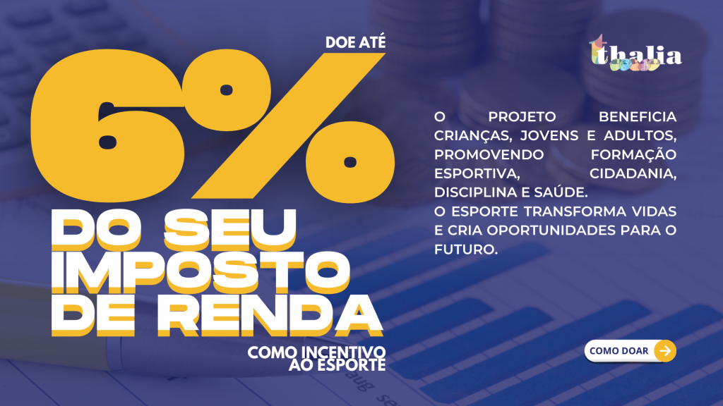 🎽 Transforme parte do seu Imposto de Renda em oportunidades para o esporte! Você sabia que pode destinar até 6% do seu Imposto de Renda devido para apoiar projetos esportivos — sem pagar nada a mais por isso?A Sociedade Thalia possui projeto aprovado pela Lei de Incentivo ao Esporte (Lei nº 11.438/2006), permitindo que pessoas […]
