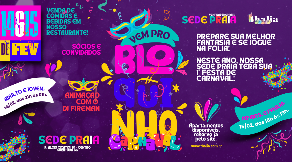 🎭✨ VEM PRO BLOQUINHO DE CARNAVAL DO THALIA! ✨🎭 A folia já tem data, hora e lugar para acontecer! 💜💛💙Prepare sua melhor fantasia, chame a galera e venha viver momentos inesquecíveis no Bloquinho de Carnaval – Sede Praia Thalia 🌊🎉 🥳 Animação garantida com DJ Fireman, muita música, alegria e aquele clima contagiante de carnaval […]