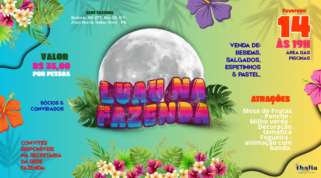 🌕🔥 LUAU NA FAZENDA 🔥🌕 Prepare-se para uma noite inesquecível, cheia de clima tropical, música e boas vibrações! ✨🌴📅 14 de fevereiro ⏰ A partir das 19h. 🎶 Música ao vivo com Kleber Barcala e Banda.🔥 Fogueira🍍 Mesa de frutas🥤 Ponche🌽 Milho verde🌺 Decoração temática especial 💰 Valor: R$ 35,00 por pessoa.🎟️ Convites disponíveis na […]