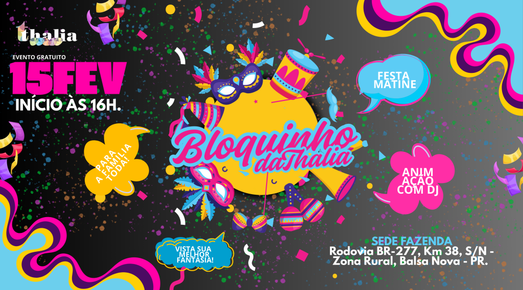 🎭🎉 Bloquinho da Thalia vem aí! 🎉🎭 Prepare a fantasia, chame a família e venha cair na folia! 💃🕺No dia 15 de fevereiro, a partir das 16h, a Sede Fazenda vira palco de muita alegria, cores e diversão com o Bloquinho da Thalia! 🌈✨ 🎶 Animação com DJ🎭 Festa Matinê👨👩👧👦 Para toda a família.🎟️ Evento […]