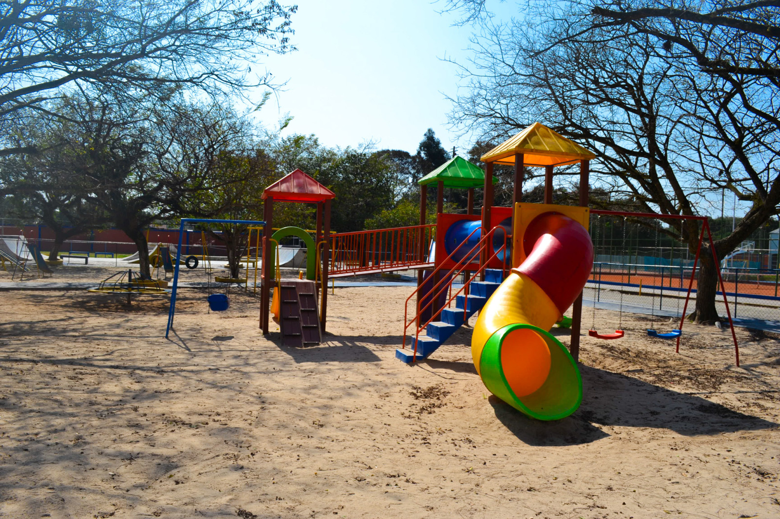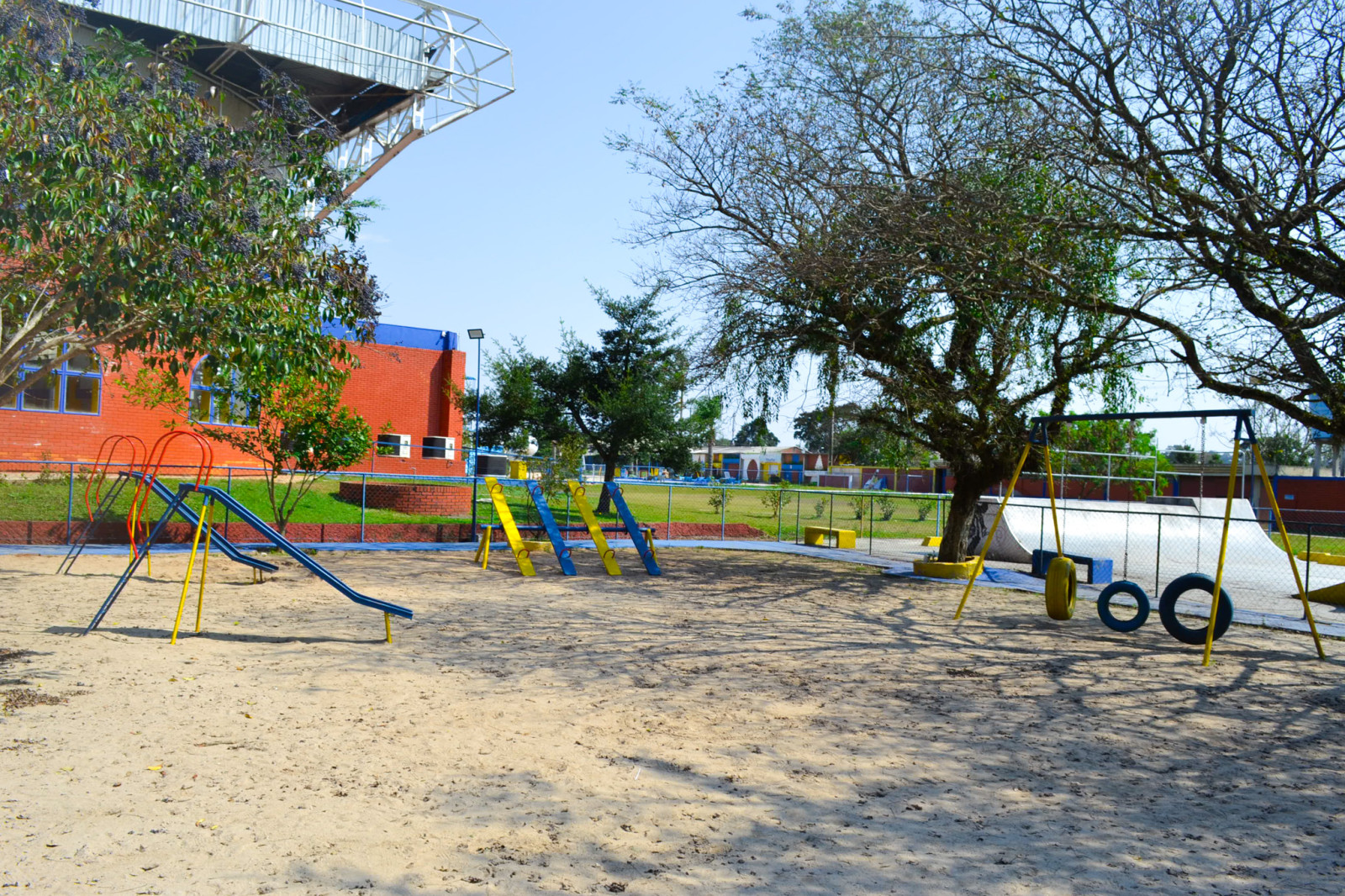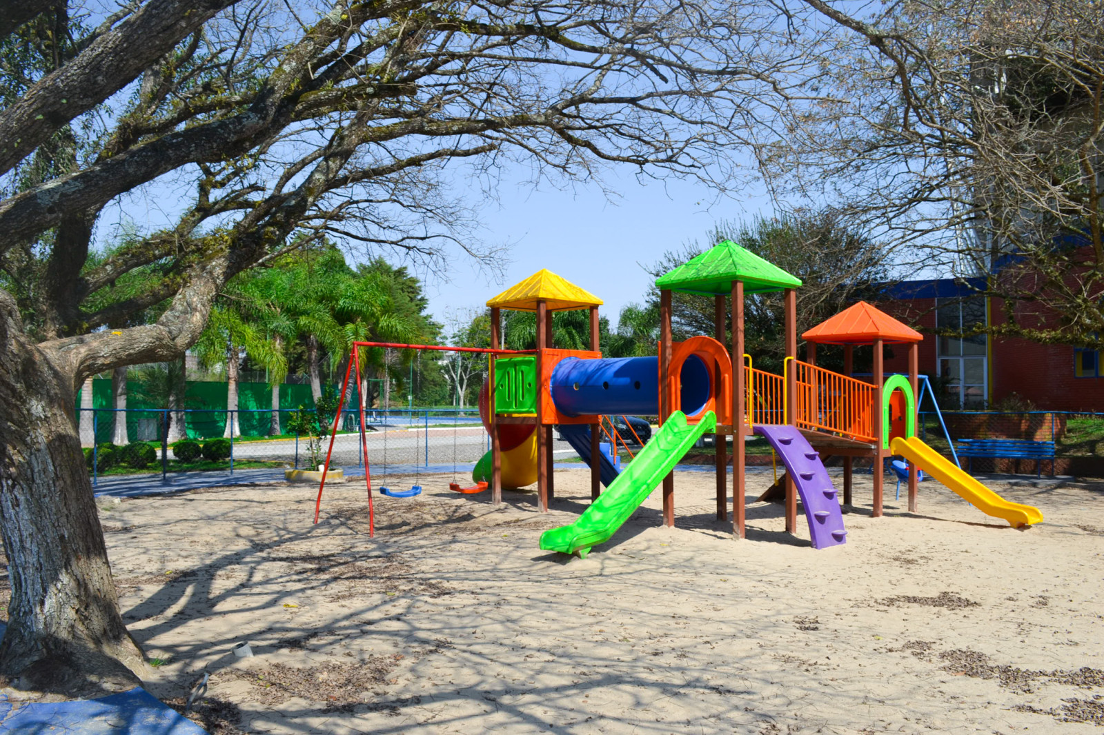 Nosso espaço conta com playground completo, com escorregador, gira-gira, balanços, escalada, e muita areia para construir castelos e o que pintar na imaginação.